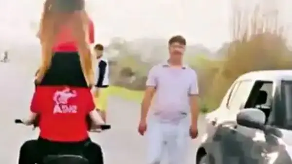 در ویدئوی منتشر شده در حالی یکی از آنها موتورسیکلت را هدایت میکردد که نفر دیگر روی شانههای او نشسته بود. این ویدئو در یکی از اتوبانهای منطقه «قاضی آباد» هند گرفته شده است. پس از انتشار این ویدئو در فضای مجازی پلیس هند وارد عمل شد و هر دو دختر را مجازات کرد. این دو اینفلوئنسر به پرداخت ۲۸ هزار روپیه به خاطر انجام نمایش خطرناک در جاده مجازات شدند.