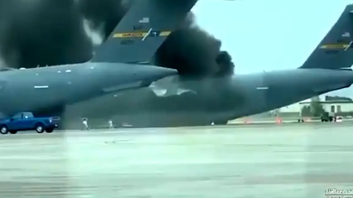 فیلم لحظه آتش گرفتن هواپیمای نیروی هوایی آمریکا