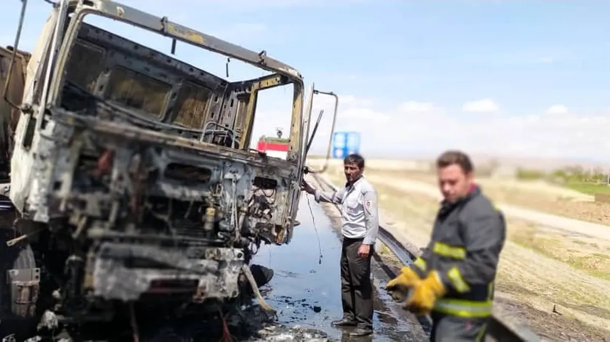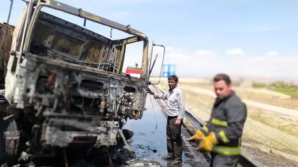 فیلم لحظه آتش سوزی تریلی در تبریز + عکس