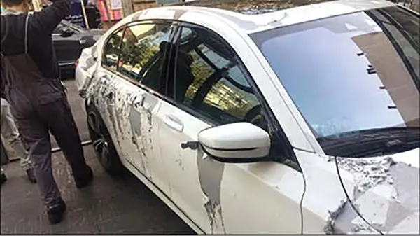 حوادث رکنا:تصاویری از خودروهای گران قیمتی که با اسید رنگ آن ها از بین رفته، در شبکه های اجتماعی دست به دست و شکل جدیدی از خفت گیری نمایان شد.