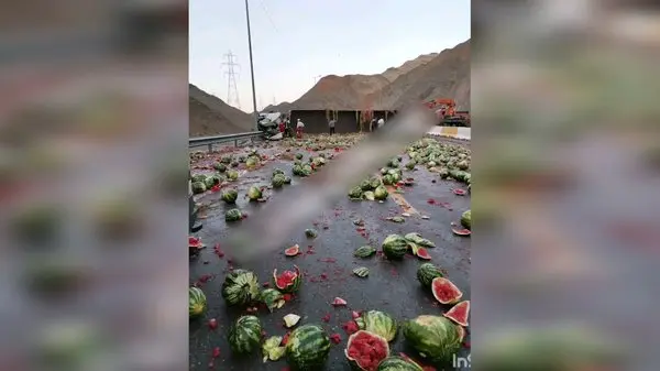 جاده کوله سنگی زاهدان پر از هندوانه شد + فیلم و عکس