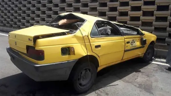 عکس های تاکسی زرد پرس شده پس از پرش 3 متری / در تهران رخ داد