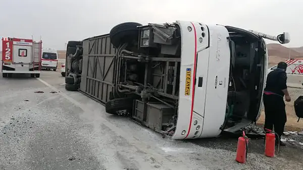 8 مسافر در واژگونی اتوبوس راهی بیمارستان شدند.