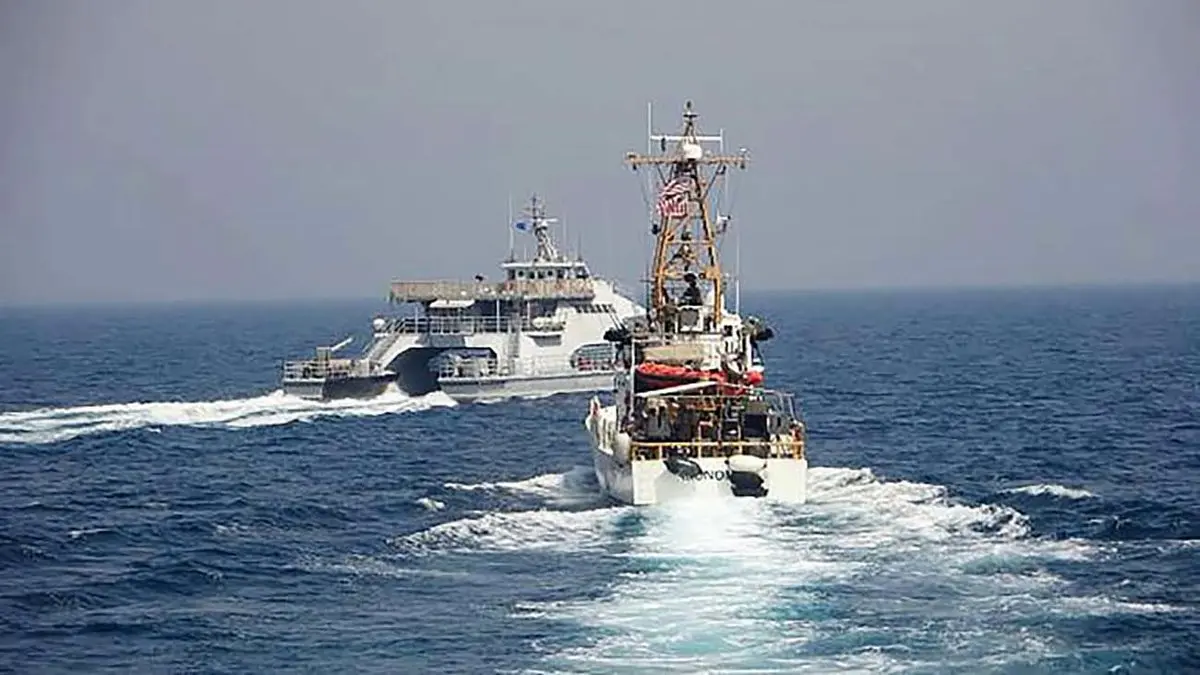 فیلم توقف 3 ساعته کشتی امریکایی از ترس شناور ایرانی در خلیج فارس + جزییات