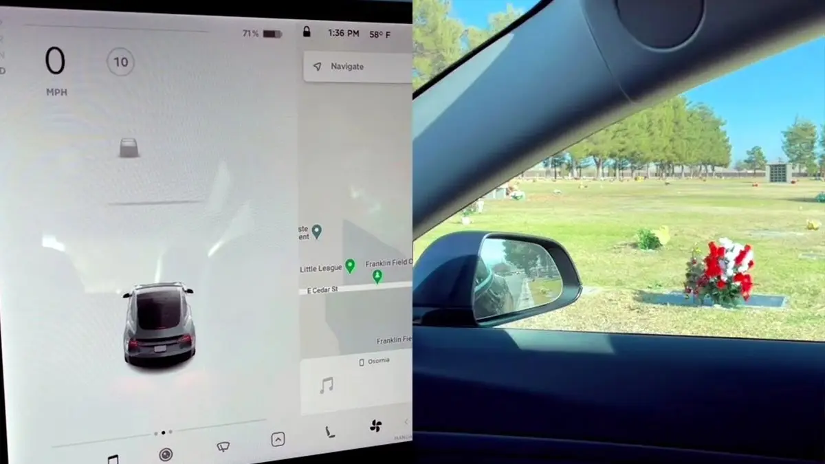 حوادث رکنا: خودروی تسلای یک شهروند آمریکایی وجود افرادی غیرواقعی را در قبرستان نشان میدهد.