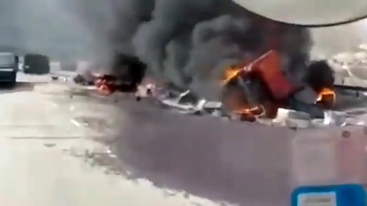 حوادث رکنا : رانندگان 2 وسیله نقلیه سنگین در آتش سوختند.