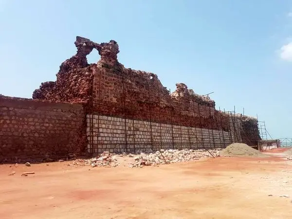 عکس از ریزش دیوار قعله پرتقالیها در جزیره هرمز