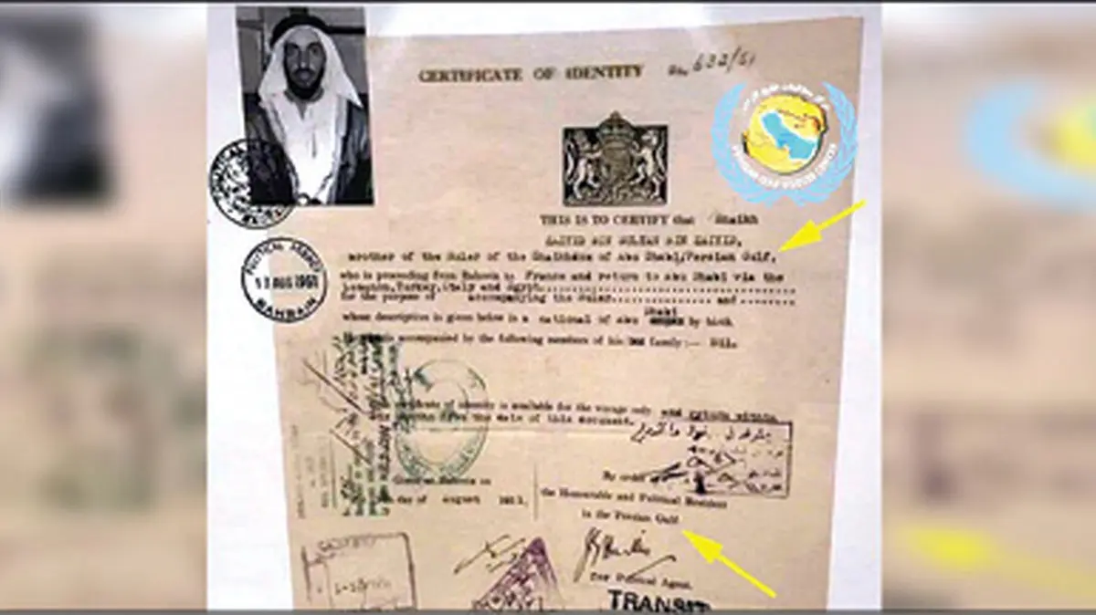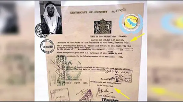 جعل سند ؟!/ ثبت نام خلیج فارس در گذرنامه بنیانگذار امارات + تصویر