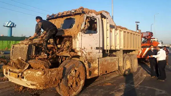 به گزارش رکنا ، سرهنگ "محمد باقرپور" ضمن اعلام این خبرگفت: در ساعت ۰۵:۳۰ صبح امروز در مسیر لاین سرعت مسیر آزادگان به شرق ابتدای شهید رستگار یک دستگاه کامیون حمل بار گِل که در این مسیر در حال حرکت بوده به علت خستگی و خواب آلودگی از مسیر خارج شده و پس از برخورد با جداول کناری بزرگراه واژگون می‌شود.