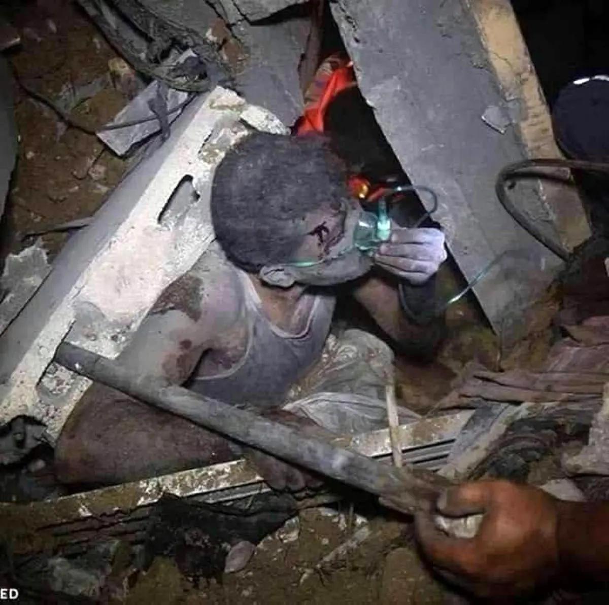 عکس دلخراش از کودک غزه ای زیر خروارها آهن و سنگ