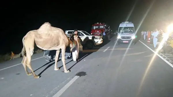 حوادث رکنا : در جاده قم تصادف ام وی ام با شتر سبب مرگ راننده شد.
