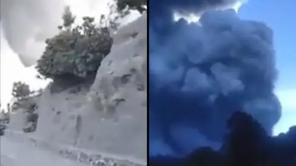 فیلم فرار مردم از فوران وحشتناک آتشفشان / اندونزی
