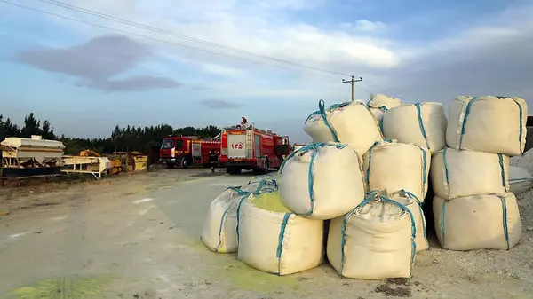 10 عکس از آتش سوزی خطرناک در سوله پر از گوگرد در مشهد