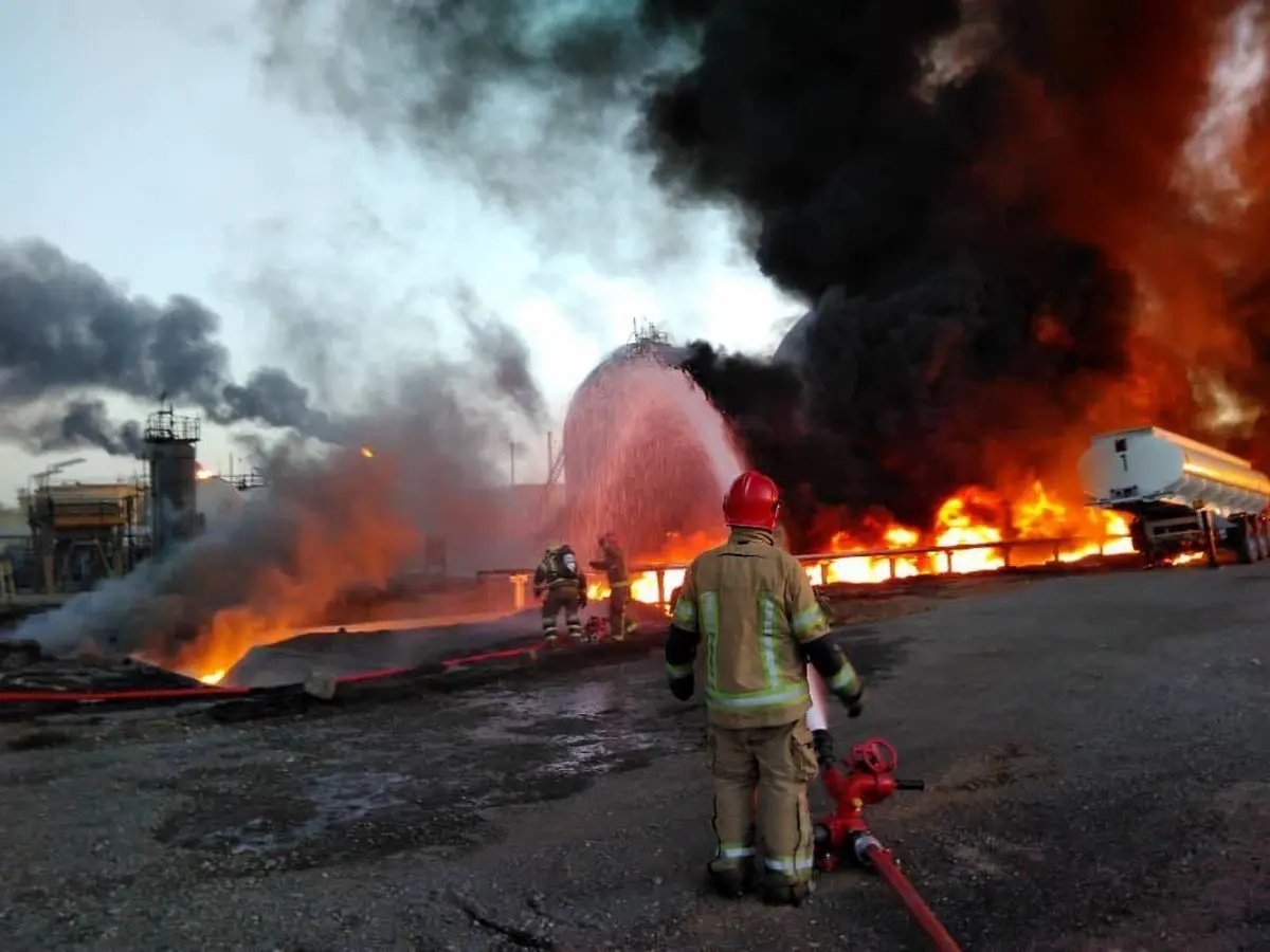 اولین تصاویر از داخل پالایشگاه تهران بعد از آتش سوزی / آتش نشانان میان آتش و دود