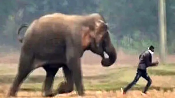 حوادث رکنا:اقدام ناشیانه یک مرد، موجب حمله وحشتناک فیل به آن شد.