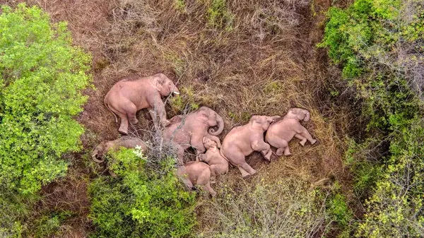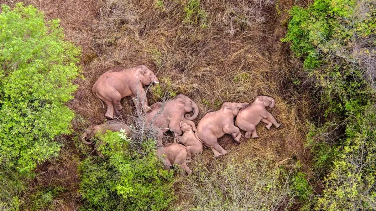 حوادث رکنا: یک گله از فیلهای_چینی ۱۵ ماهه بدون هدف معلومی در حال سفرند و پژوهشگران را سردرگم کردند.