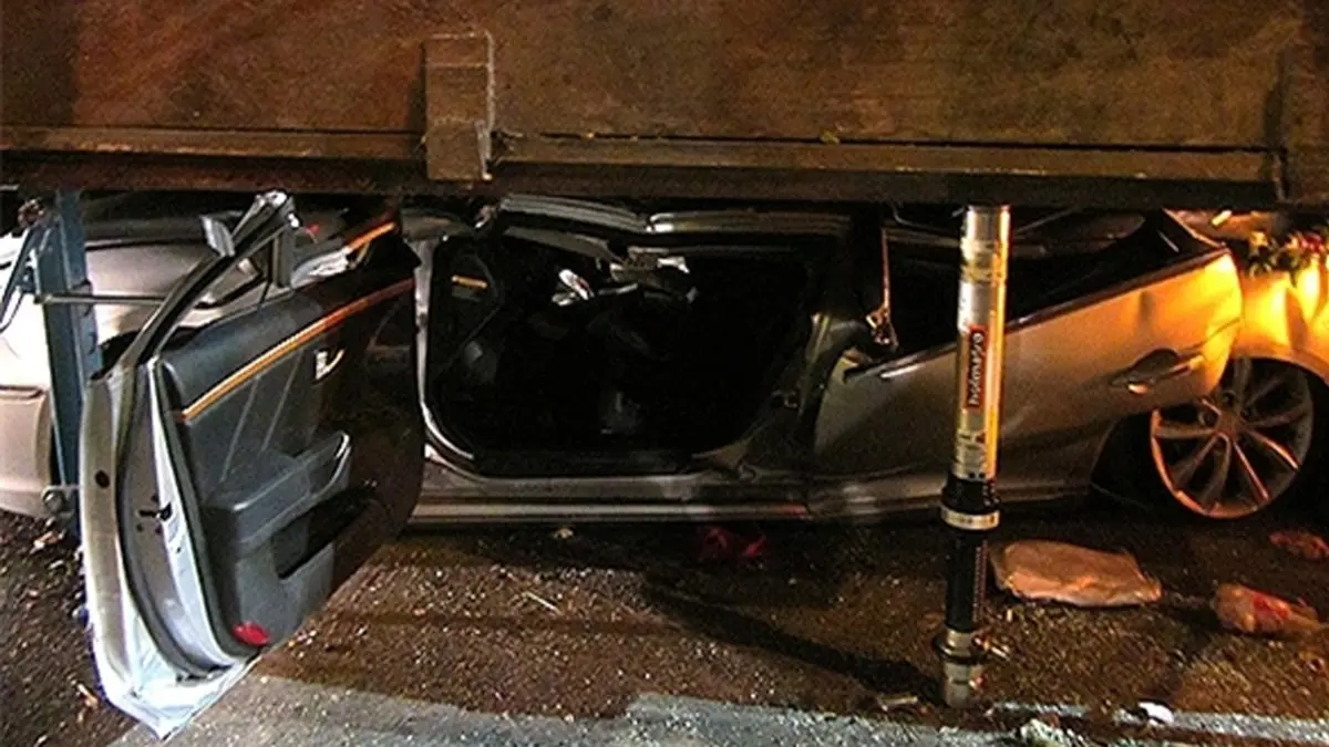 لحظه له شدن یک ماشین زیر سازه فلزی را مشاهده کنید.