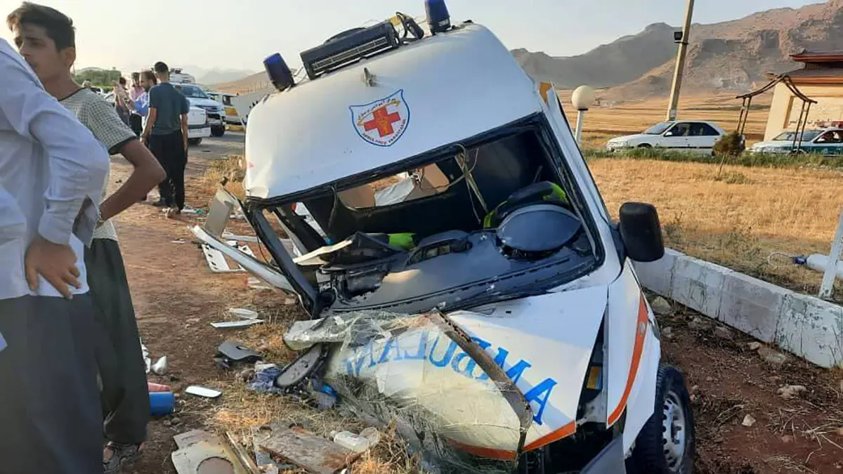 عکس / تصادف شدید آمبولانس اورژانس با پژو ۴۰۵ در جاده کرمانشاه