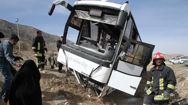 اولین فیلم از حادثه اتوبوس مسافربری قم
