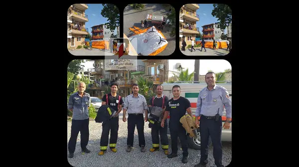 اقدامات اولیه آتش نشانان: پهن کردن تشک نجات و بررسی محوطه ساختمان مذکور و نیز صحبت کردن با فرد درحال خودکشی و به آرامش رساندن وی تا از این اقدام خطرناک صرف نظر کند.