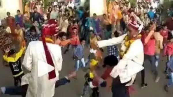 لحظاتی بعد فردی که داماد سوار بر شانه اش است ناگهان با پشت روی زمین سقوط کرده و داماد نیز شدیدا به زمین برخورد میکند. در ادامه در حالی که مهمانان حاضر در عروسی از دیدن این صحنه شوکه شده بودند برخی دوستان داماد به سمت او شتافته و تلاش میکنند تا وی را از روی زمین بلند کنند.