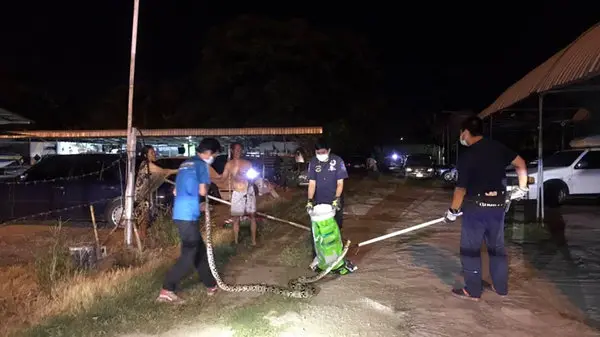 یک مار پیتون به وزن 30 کیلوگرم در گاراژ پرسه می زد و موجب وحشت مرد تایلندی شد.