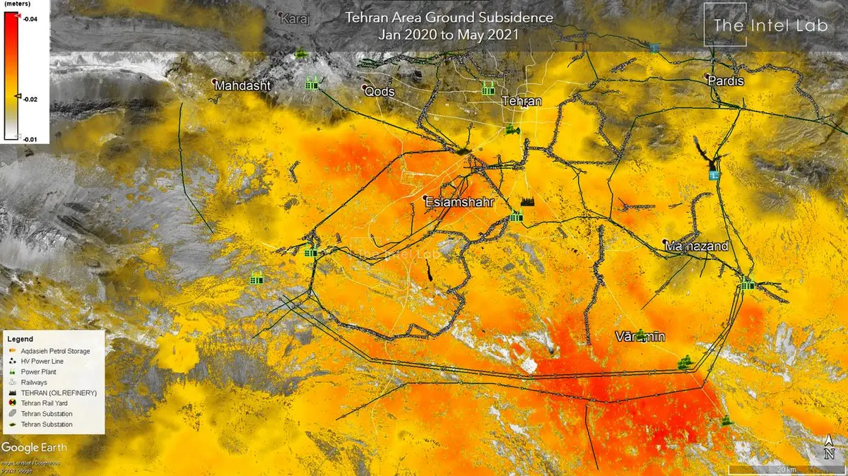 به گزارش خبرنگار اجتماعی رکنا ،موسسه تحقیقاتی اینتللب که گروه بینالمللی مشاوره اطلاعاتی است، با انتشار چند تصویر ماهوارهای، فرونشست زمین در اطراف تهران را «بمب ساعتی بیصدا» توصیف کرد.