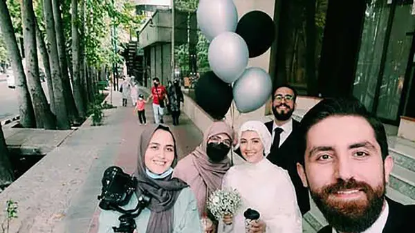 این زوج جوان دست در دست هم با همراهی دوستانشان در خیابان ولیعصر تهران پیاده روی کردند، در کافه ای قهوه خوردند و جشن گرفتند.