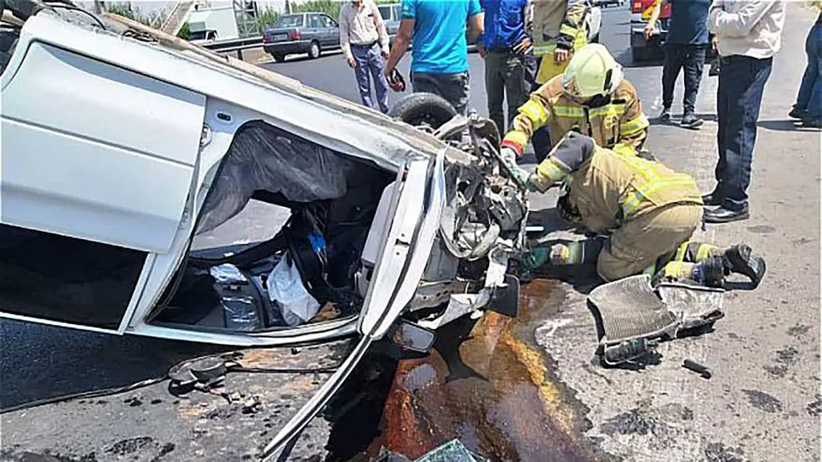 صحنه زنده ماندن مرد 20 ساله در پراید له شده / در ورامین رخ داد