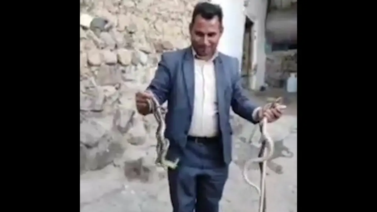 فیلم از لحظه شکار مار سمی از طویله یک هشترودی / مرد مارگیر کیست ؟