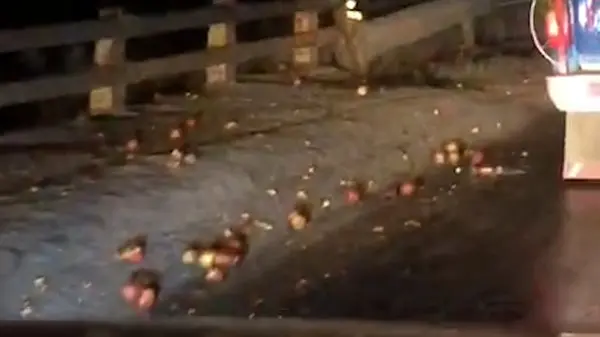 فیلم واژگونی خودروی حامل سیب در جاده مرند
