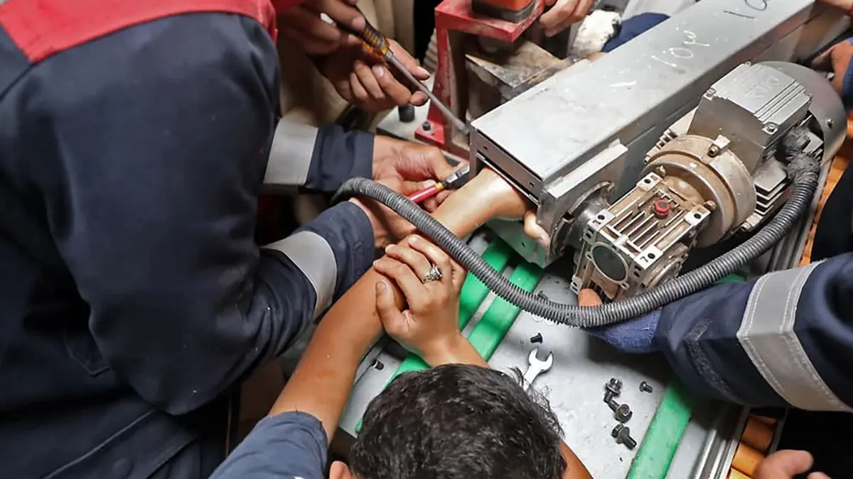 عکس های عملیات سخت برای رهاسازی دست نوجوان مشهدی از دستگاه صنعتی