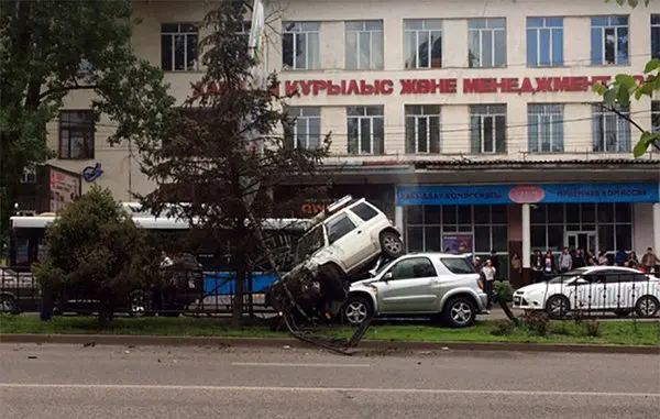 رکنا: دو خودروی میتسوبیشی و تویوتا در یک خیابان آلماتی تصادف وحشتناکی داشتند. در این حادثه یکی از خوردوها به دلیل سرعت و انحراف از مسیر بر سقف خودروی دیگر سوارشد.