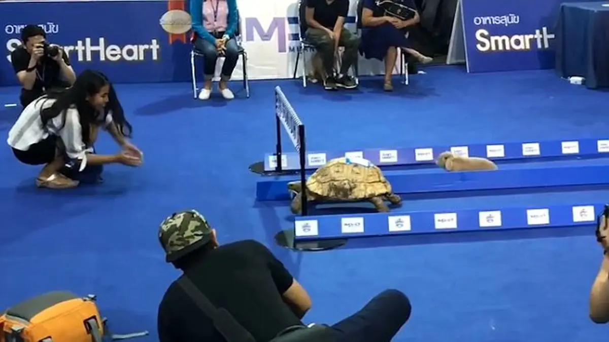رکنا: نتیجه مسابقه بین دو حیوانی که از نظر سرعت با هم در تضاد هستند موجب شگفتی تماشاگران این رقابت شد.