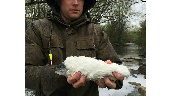 رکنا: این نوع ماهی بسیار کمیاب در رودخانه ای در یلونایف کانادا زندگی می کند. موهای سفید آن هم به علت شرایط خاص محیطی بر روی بدنش رشد کرده است.