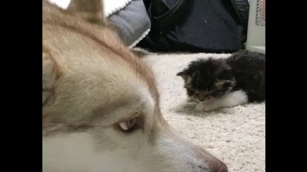 بچه گربه ای که یک سگ برایش مادری می کند+فیلم