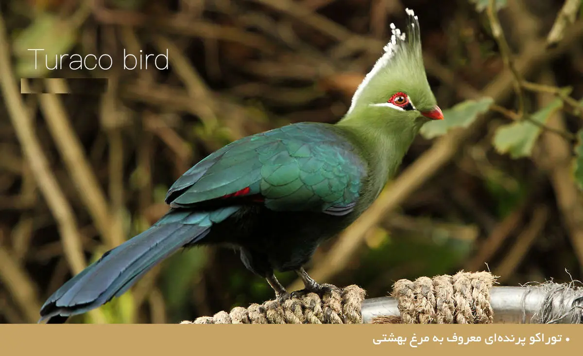 رکنا: توراکو یا موزخوار (مرغ بهشتی) پرندهای از تیره Musophagidae است. توراکوها (مرغهای بهشتی) به دلیل رنگدانههای سبز و قرمز ویژه و منحصربه فردشان مورد توجه هستند و در گذشته هم بومیان آفریقایی از پرهای این پرندگان برای تزیین لباسهای خود استفاده میکردند.توراکوها (مرغ های بهشتی) پرندههایی با اندازه متوسط با تاج برآمده و دم دراز هستند.