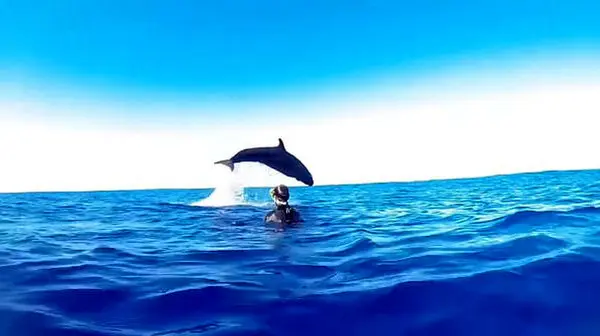 صحنه نادر شیرجه زدن نهنگ دندانکلفت در میان غواصان استرالیایی + فیلم و عکس