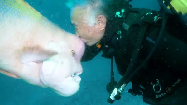 رکنا: غواص ژاپنی 25 سال است که با یک ماهی رابطه دوستی دارد.