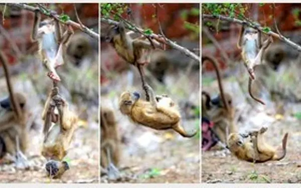 رکنا: بازیگوشی چند بچه میمون در حرکات ژیمناستیک این حیوانات در پارک ملی «کروگر» سوژه عکاس حیات وحش شد.