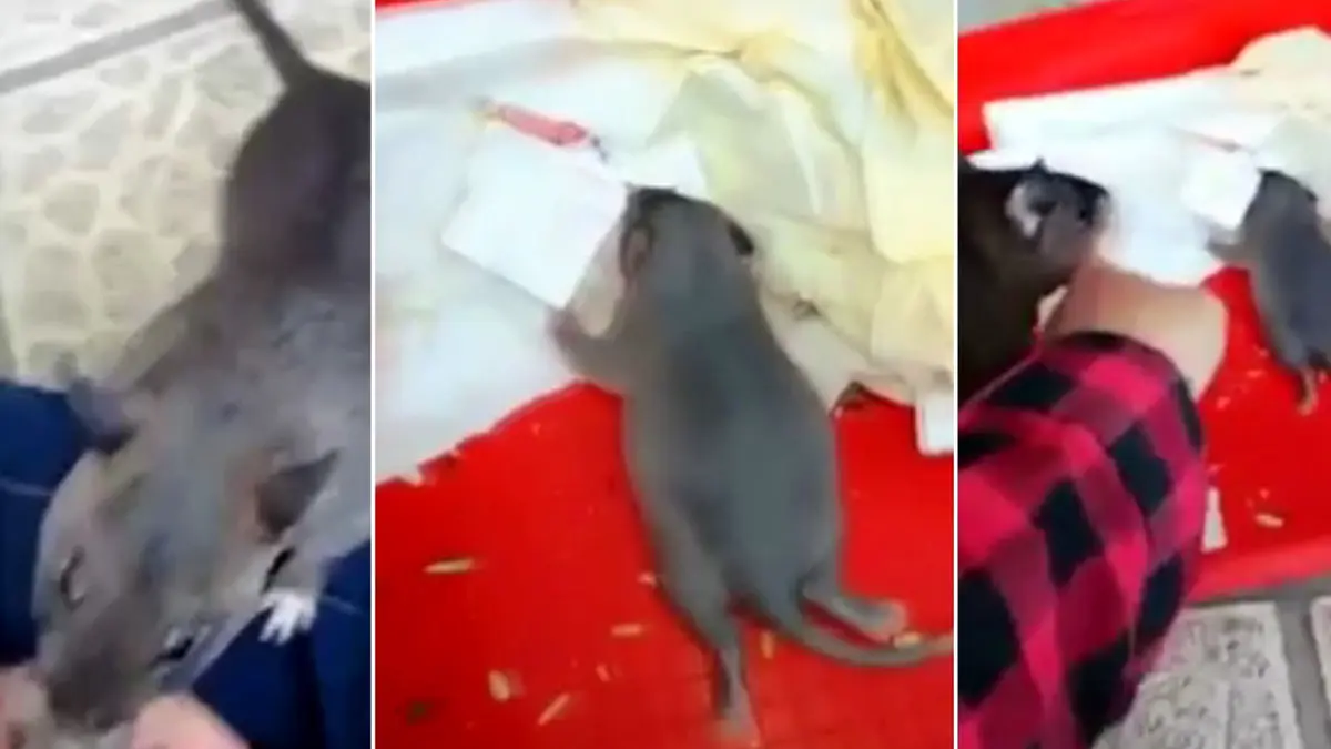 موش غول پیکر برای نجات بچه اش از یک انسان کمک خواست!+فیلم