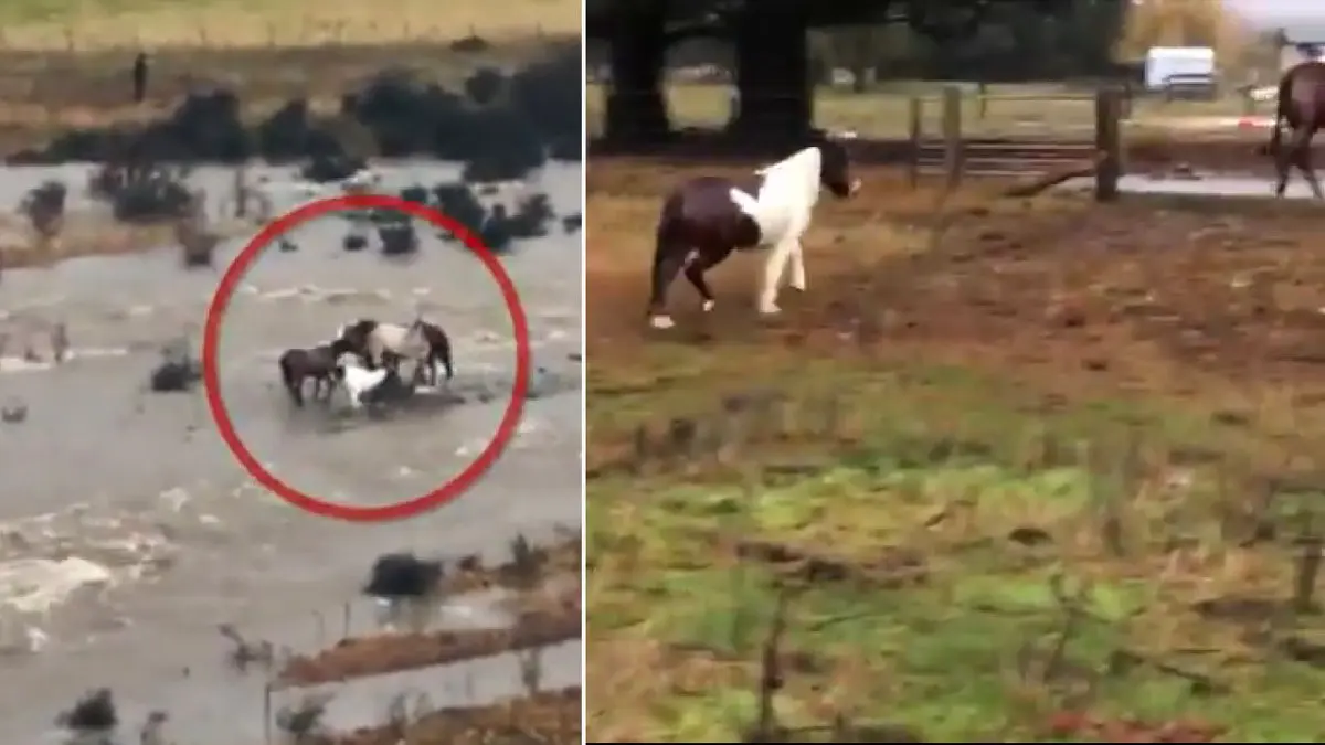 تلاش اسب مادر برای نجات کره اش از سیلاب +فیلم
