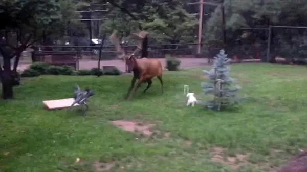 دوستی عجیب گوزن و دو توله سگ با هم به عنوان حیوانات خانگی! +فیلم
