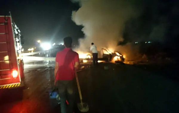 رکنا: برخورد شدید خودروی ال 90 با گاردریل جاده شوش – دزفول باعث آتش سوزی شدید شد.
