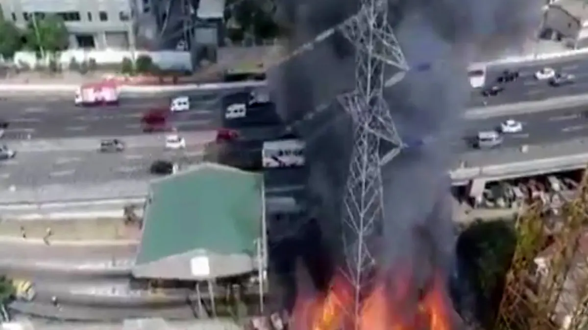یک دکل برق در فیلیپین بر اثر آتش سوزی سقوط Fall کرد.