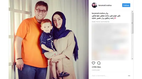 رکنا: مهسا کرامتی عکسی از خود به همراه خانواده اش در اینستاگرامش قرار داد.