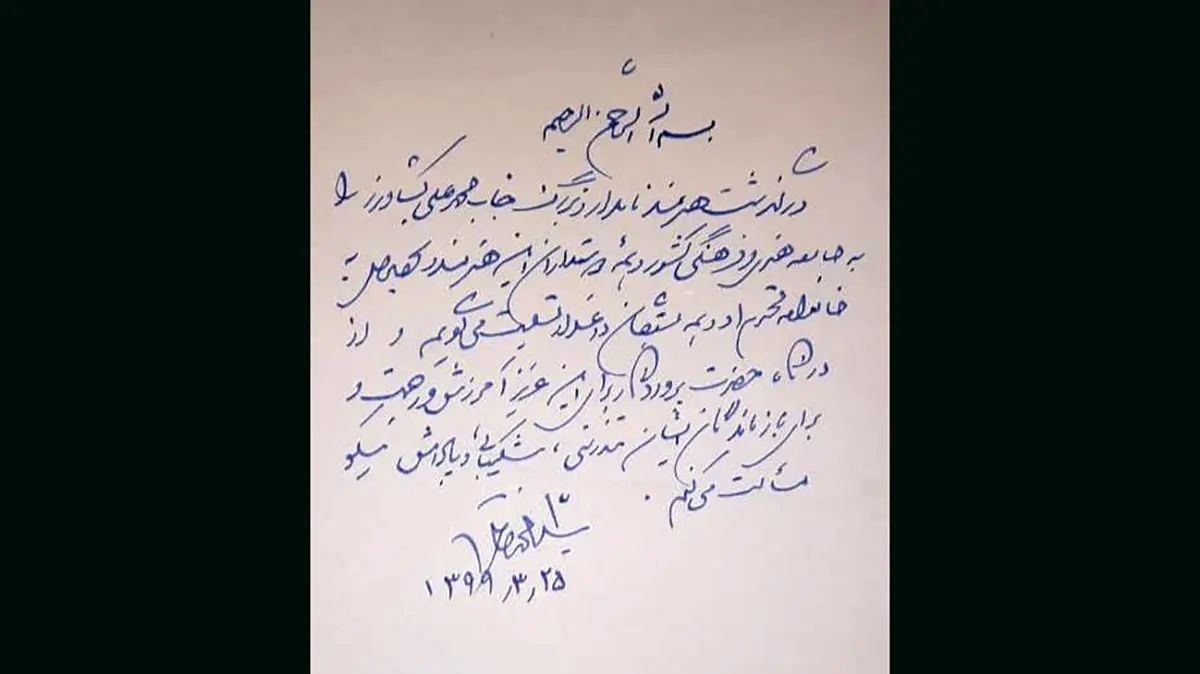 درگذشت هنرمند نامدار و بزرگ جناب محمد علی کشاورز را به جامعه هنری و فرهنگی کشور و همه دوستداران این هنرمند، بخصوص به خانواده محترم او و همه بستگان داغدار تسلیت می گویم و از درگاه حضرت پروردگار برای این عزیز آمرزش و رحمت و برای بازماندگان ایشان تندرستی ، شکیبایی و پاداش نیکو مسألت می کنم.