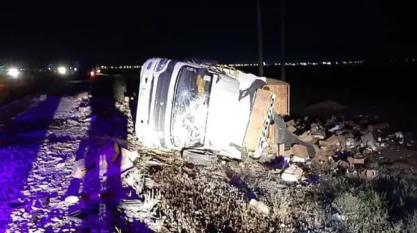 حوادث رکنا: کامیونی در کیلومتر ۲۰ محور نیشابور_سبزوار واژگون شد.