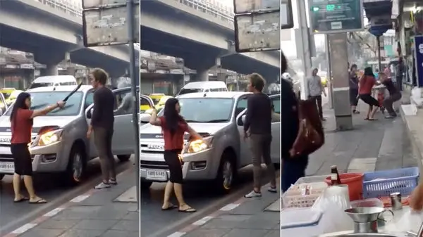 زن خشمگینی که همسرش تمام شب را بیرون از خانه در یک مهمانی Party به خوشگذرانی پرداخته بود صبح بدنبال یافتن وی راهی خیابان های بانکوک، تایلند شد. وی همسرش را در یک کافه در حال صرف صبحانه دید که با چاقوی بزرگی به استقبال وی رفت. زن عصبانی به شوهرش دستور می داد که به خانه بازگردد. شاهد عینی اذعان داشته از صحبت های این زن متوجه شده که همسرش تمام شب را بدون اجازه وی در یک مهمانی به خوشگذارنی پرداخته است. همچنین وی افزود از نحوه برخورد این زن و چاقوی بزرگی که به دست داشته واقعا شوکه شده بود. این زن چاقو را در فاصله کمی از صورت مرد جوان تکان می داده و وی را وادار به رفتن به خانه می کرده است. زن جوان هنگامی که دید همسرش برای رفتن به آن سمت خیابان جایی که خودرو اش بوده تنبلی می کند با تیغه چاقو ضربه محکمی به وی زد.برای ورود به کانال تلگرام ما کلیک کنید.