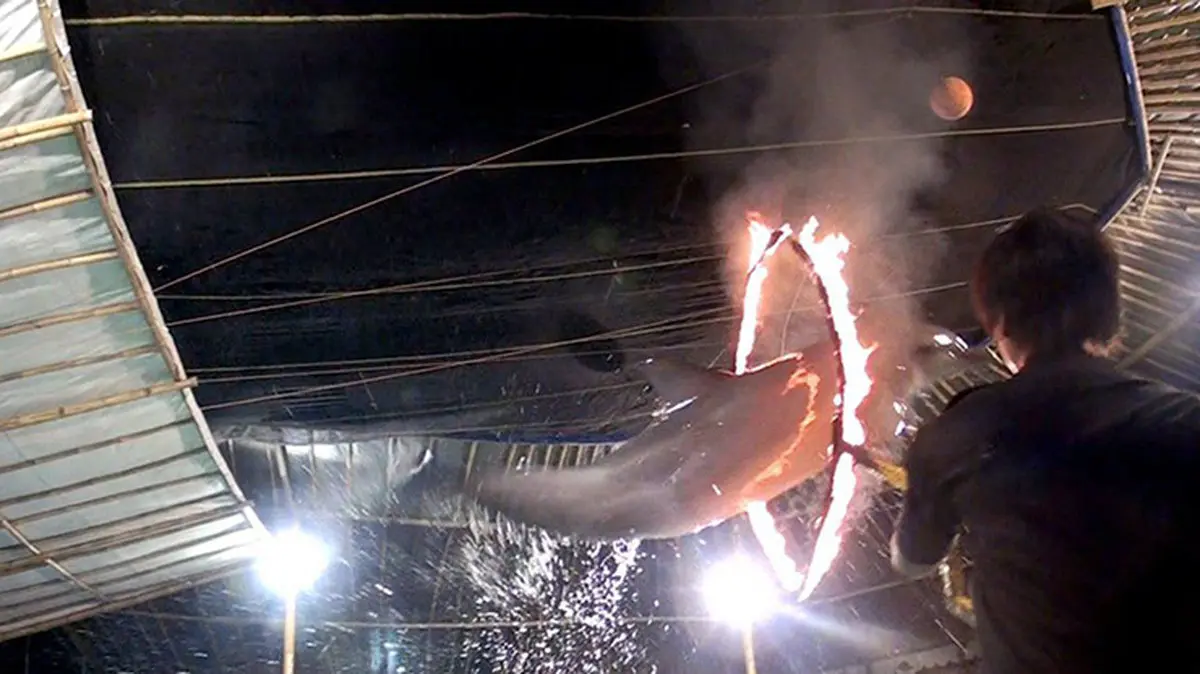 عبور از حلقه های آتشین یکی از سخت ترین این آموزش هاست. طی چند ماه آموزش سخت که گاهی با خشونت و ضربات دردناک شلاق Whip و گاهی پاداش های کوچکی چون دریافت ماهی مرده همراه است دلفین ها یاد می گیرند تا بدن بزرگ خود را از میان حلقه های سوزان عبور داده و کارهای نمایشی را انجام دهند.برای ورود به کانال تلگرام ما کلیک کنید.